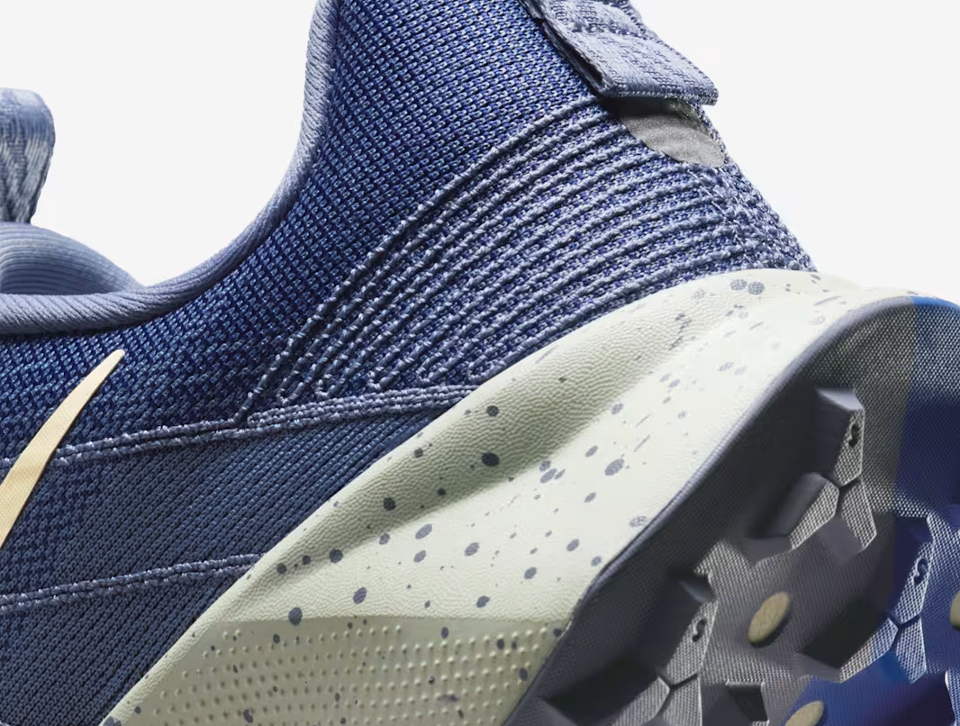 Underfoot, the shoe features Nike React foam in the midsole, offering a plush, responsive ride that absorbs impact without sacrificing ground feel. The segmented rock plate adds protection from sharp objects underfoot, making rocky trails more manageable. On the outsole, aggressive lugs made from high-abrasion rubber provide excellent grip and traction, especially on loose dirt, gravel, or mud.