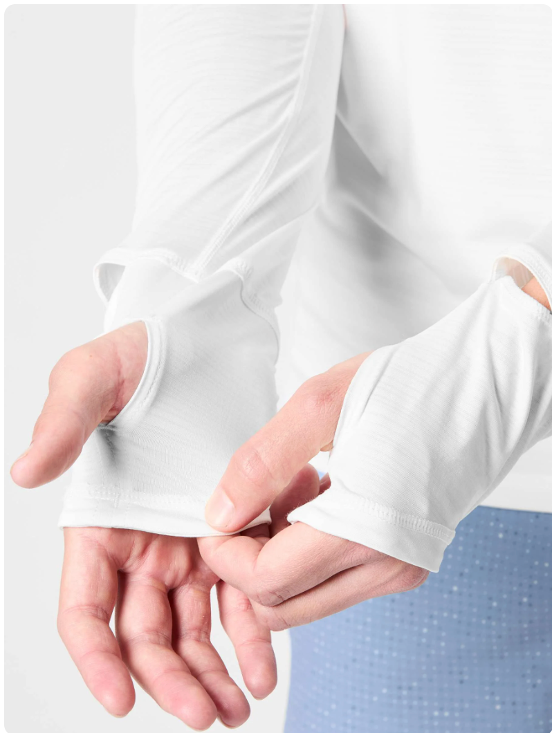 Stay cool and covered under the sun with this custom 7000 Feet Running Company sun hoodie - our newest collab with Rabbit.  Featuring a UPF 50 rating, the 2.0 version is made from lightweight jersey fabric with laser-cut perforations under the arms for exceptional ventilation. The scuba-style hood shields your neck and ears, while the built-in brim provides extra shade for your face. Slanted cuffs extend over the hands for added coverage, and a discreet zippered pocket at the back keeps small essentials secure.