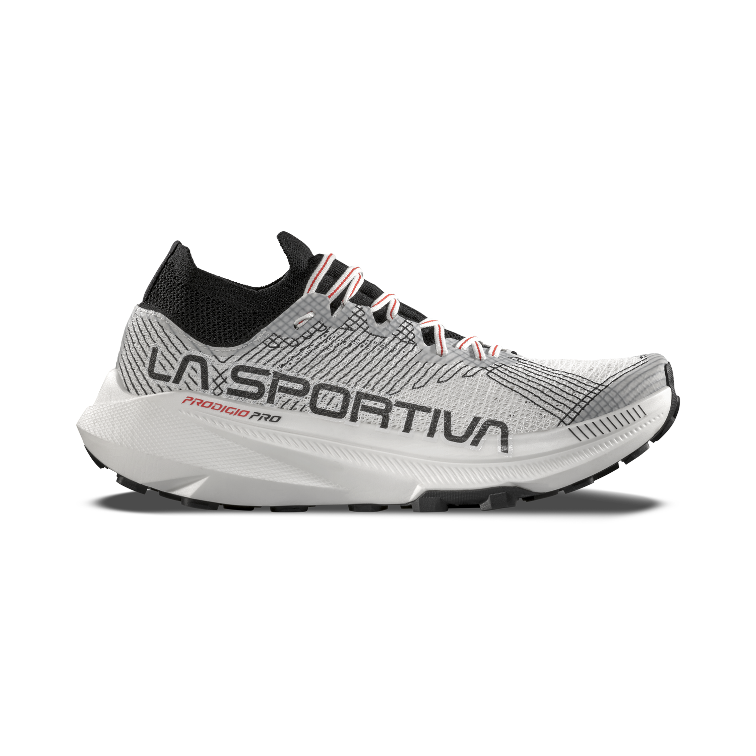 Max cushion platform – The Men’s La Sportiva Prodigio Pro features one of the highest stacks in the brand’s lineup: 34 mm heel / 28 mm forefoot, offering a plush, protective ride built for long distances and ultra efforts.