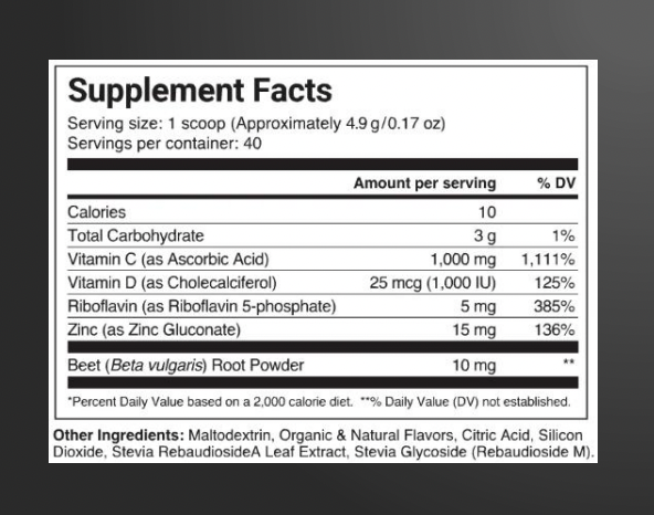 - 1000 IU of vitamin D3 + 15 mg of zinc in each serving.